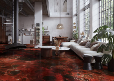 Finishes vary, but the floor is sealed—usually with luxurious epoxy—giving lasting durability and protection of the art itself.